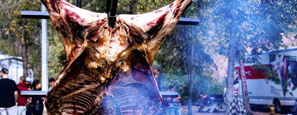 For the first time ever in Canada, an entire steer was cooked open-fire, pit-style, right here in Rainbow Valley. The sheer scale of it was breathtaking — hours of preparation, teamwork, and precise fire control coming together in a scene that felt straight out of a documentary. The smoke rolled, the crowd gathered, and the valley itself seemed to glow under the reflection of the flames.